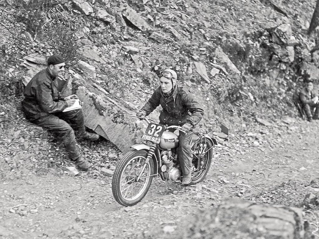 The following year marked a turning point. Despite the previous year’s accident. Kevelos returned riding a 500cc Norton, and won her first International Six Days Trial gold medal in Wales. It was a decisive achievement, earned in an event widely regarded as the most demanding in motorcycling—six consecutive days of long-distance riding over severe terrain, with riders responsible for maintaining and repairing their own machines.